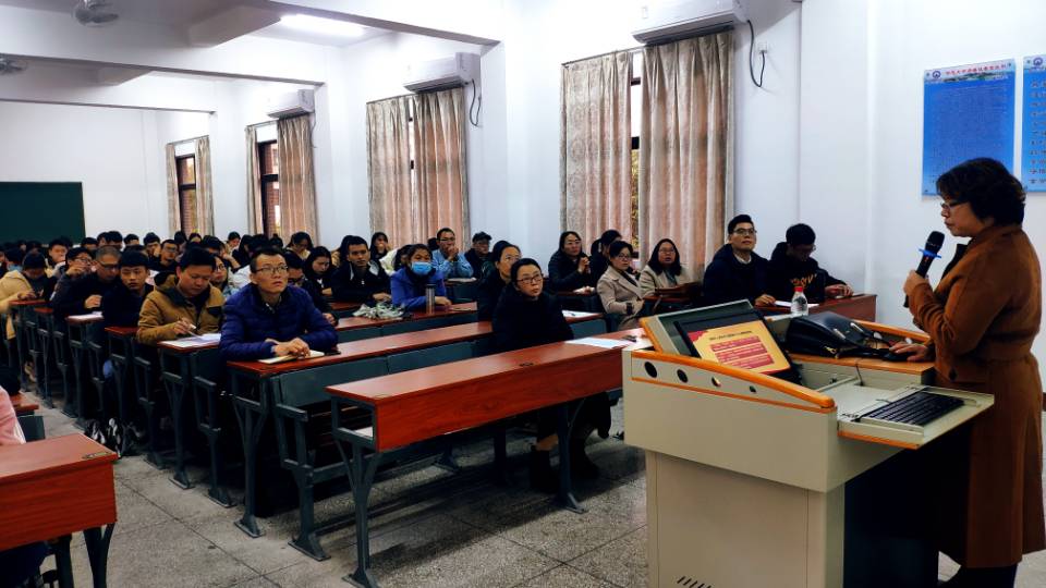 12月5日,开云官网在祥贤楼309开展《习近平新时代中国特色社会主义思想三十讲》宣讲活动。马克思主义学院章娇娜副教授作题为“以人民为中心是新时代坚持和发展中国特色社会主义根本立场”宣讲,开云官网全体教师和学生党员一同聆听宣讲。