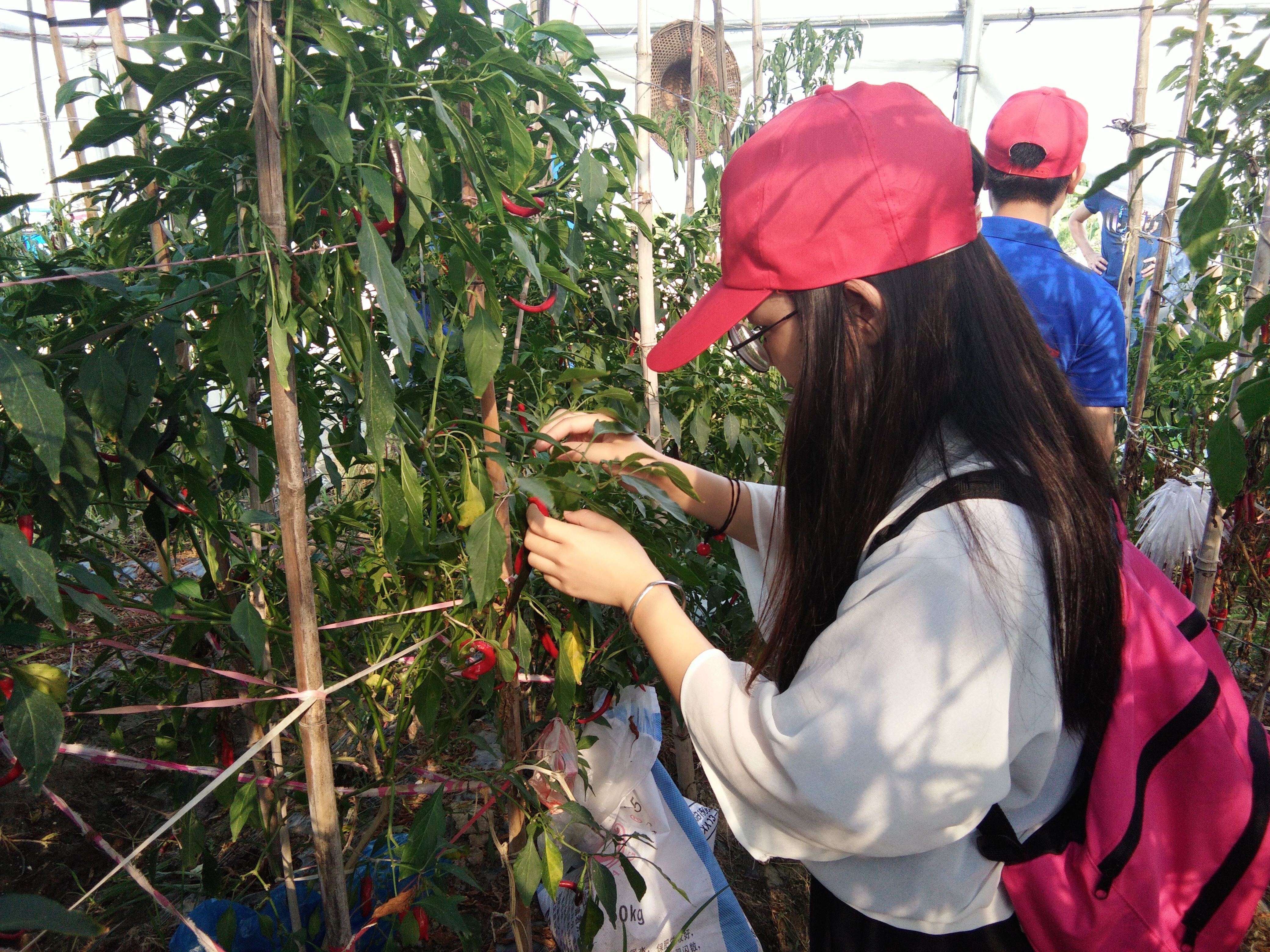 实践队员摘辣椒.