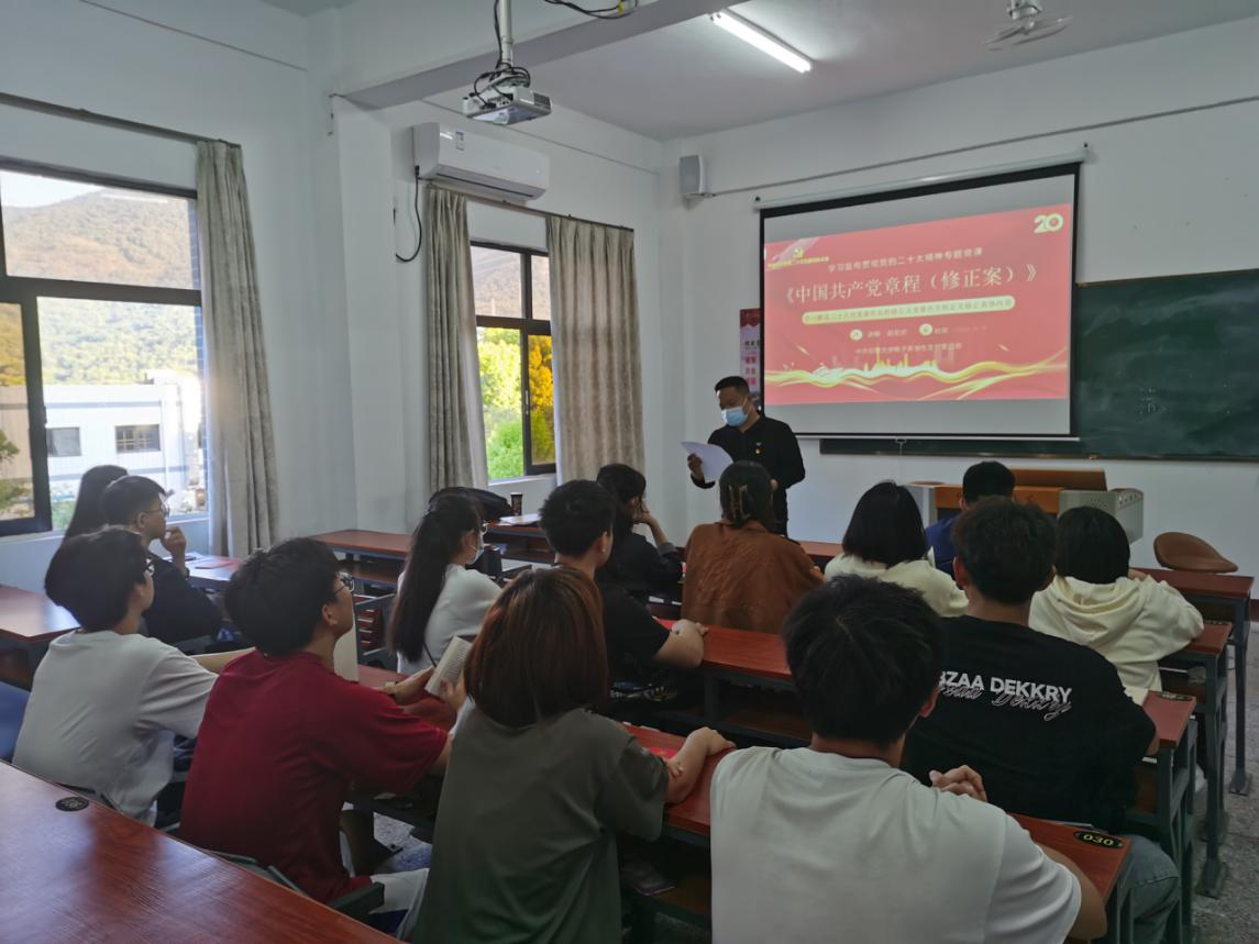 2022年11月10日,中共开云kaiyun登录入口电子系学生支部委员会开展围绕学习贯彻党的二十大精神,以《二十大对党章作出的修正》为题的专题党课。支部全体党员出席,会议由支部书记赵宏岩同志主持。