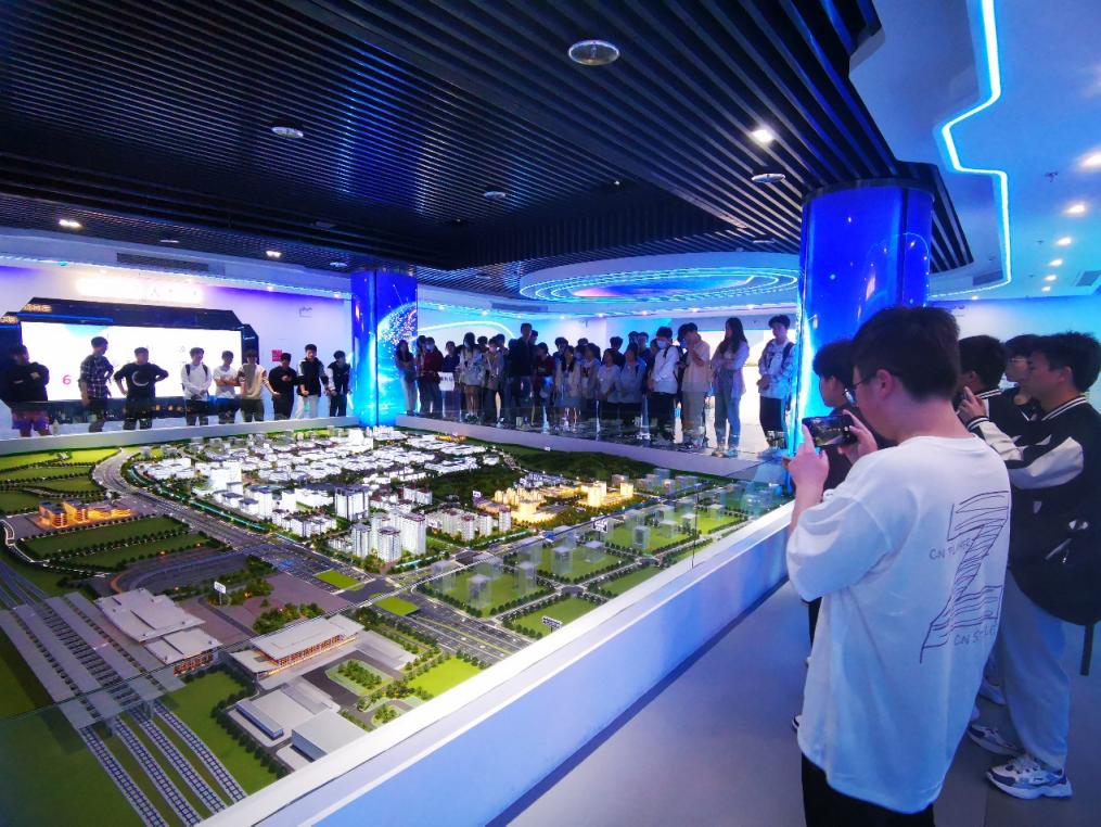泉州天九孵化器管理有限公司创业导师金哲、王劲戎带领同学们参观了泉州数字经济产业园展厅并做详细讲解。