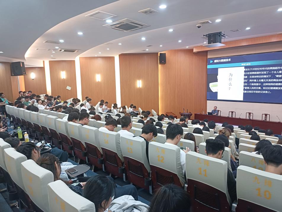 讲座中,吴涛先向同学们阐释了“三分技术,七分数据,得数据者得天下”的内在涵义,他指出,我国发布的有关大数据发展的通知及世界各国出台的大数据发展计划,均说明了“数据已成为国家基础性战略资源,大数据已成为国际竞争新焦点”。随后,吴涛通过美国超市中“啤酒与尿布”的现象向同学们生动解释了何为大数据及大数据的核心,还通过生活中极易被忽略的种种现象,让同学们感知到大数据技术的广泛应用。最后,从数商、大数据伦理等多方面讲述大数据的赋能发展。