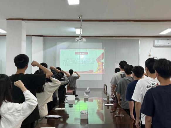 会议伊始,由蔡忠庭老师带领同学进行入党誓词宣誓并分发《中国共产党纪律处分条例》与《党员应知应会200条》。会议上支部制定了详细的学习计划,鼓励支部党员们积极认真学习并领会《中国共产党纪律处分条例》修订的重大意义,做到学纪、知纪、明纪、守纪。开展党纪学习教育,是加强党的纪律建设、推动全面从严治党向纵深发展的重要举措,进一步要求支部党员严格自律,切实做到真学真信,坚决守住纪律底线,使遵章守纪成为一种习惯。