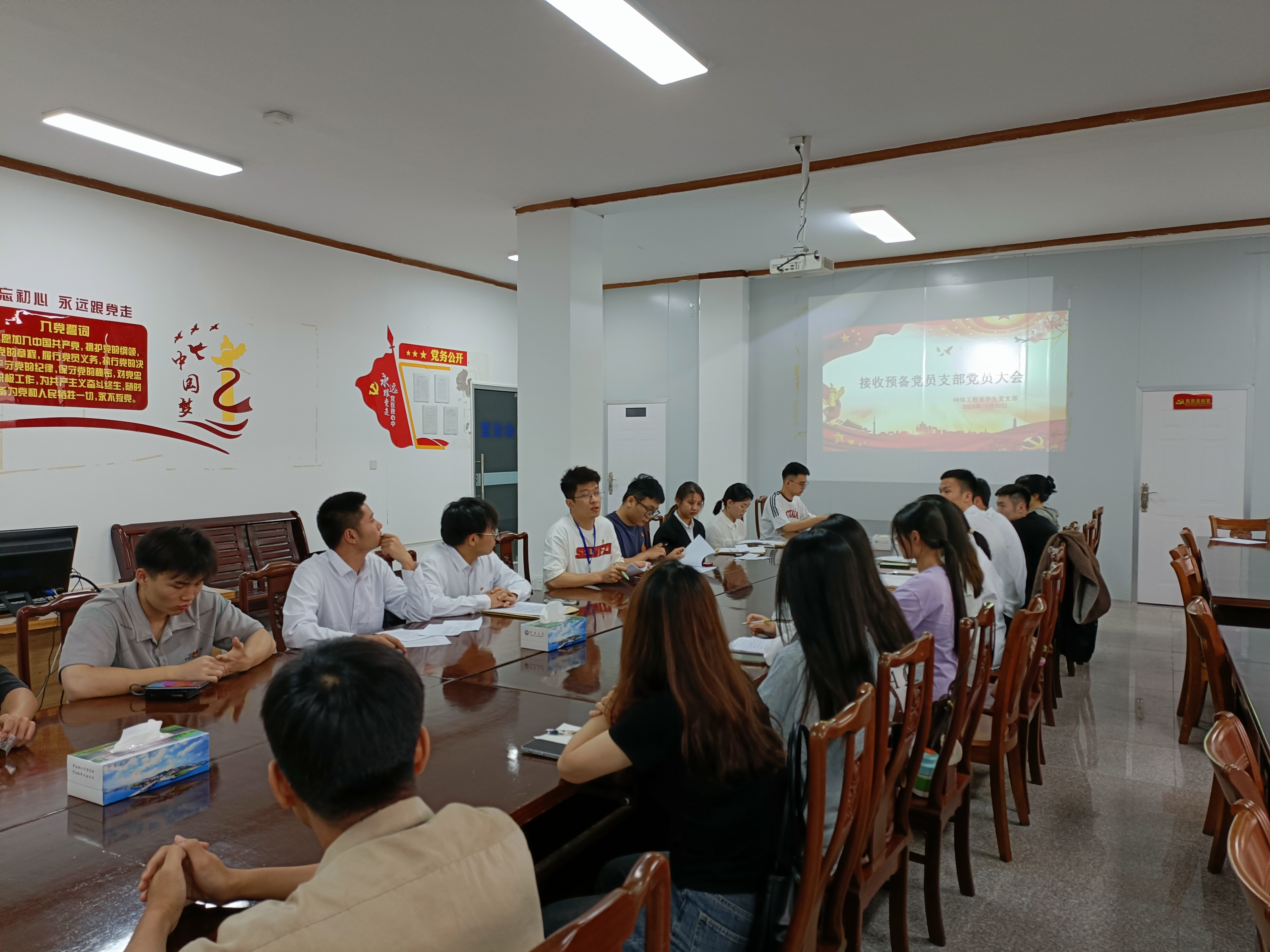 网络工程系学生党支部于530日在泽钏楼四楼会议室成功召开了讨论接收预备党员大会。会议由网络工程系党支部书记徐凯迪,组织委员蒋心益,宣传委员池建榆,网络工程系所有预备党员和正式党员参加。
