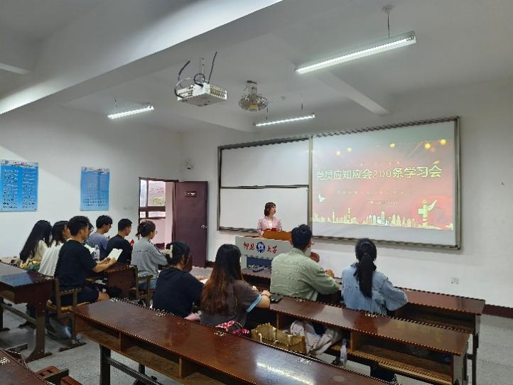 陈思萍老师对《党员应知应会200条》习近平新时代中国特色社会主义思想的丰富内涵与精神实质、党的理论、党务党建、党规党纪、党的历史五个方面的知识进行了梳理和简要回答。支部党员通过交流讨论、查阅资料、集体朗读等形式开展了对相关知识的学习。
