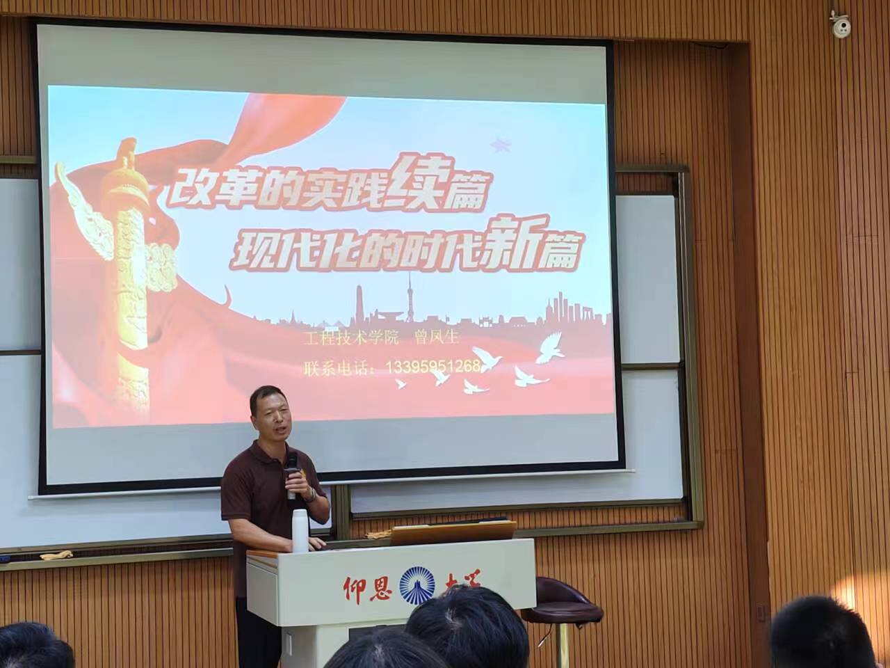 为深入学习贯彻党的二十届三中全会精神,切实将全会精神融会贯通于思政课教学之中,扎实推进思想政治教育,引导广大青年学子为推进中国式现代化贡献更大的青春智慧和力量,10月12日—14日期间,开云kaiyun登录入口党总支书记曾凤生为全体2024级新生讲授了题为“改革的实践续篇,现代化的时代新篇”的思政第一课。