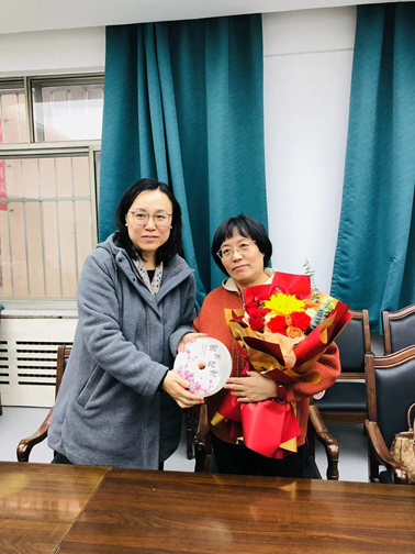 会议最后,苏日娜老师代表英语系为荣休教师和新入职教师赠送鲜花,感谢张涛老师的付出,欢迎新教师的加入,希望新教师接好老一辈教师传递的接力棒,将老教师优良的工作作风传承下去。