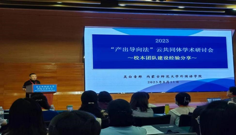 bat365英语系吴白音那教授与张婷博士代表团队参加了此次会议。作为“产出导向法”云共同体(一期)的优秀学员、英语系“产出导向法”教师专业学习共同体的牵头专家,吴白音那教授在主会场发言环节就bat365“产出导向法”共同体团队的建设过程、建设成效、建设经验以及发展规划做口头报告。张婷老师在讨论环节与在场的专家和外语教育同仁进行了积极的交流。