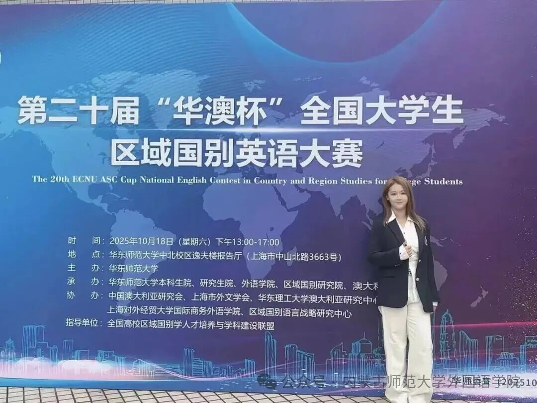 2025年10月18日,由华东师范大学主办的第二十届“华澳杯”全国大学生区域国别英语大赛在该校中北校区举行。作为全国高校区域国别研究领域极具影响力的赛事,本次大赛吸引了北京外国语大学、复旦大学、上海外国语大学等国内顶尖高校的优秀学子同台竞技,竞争尤为激烈。
