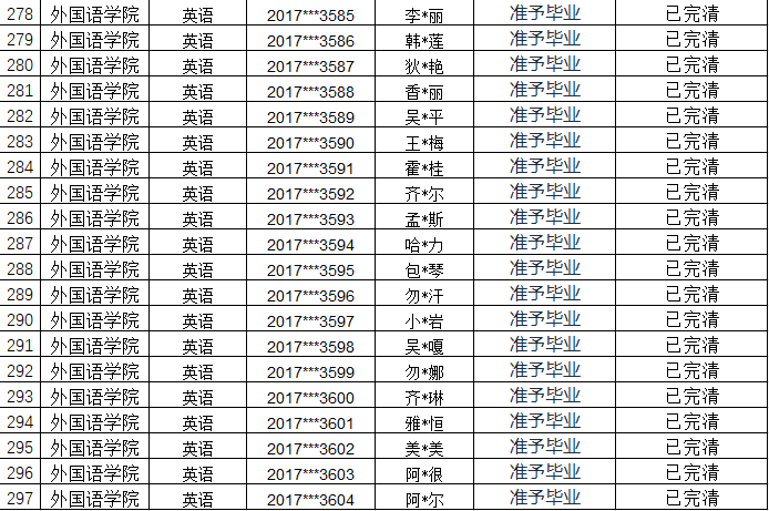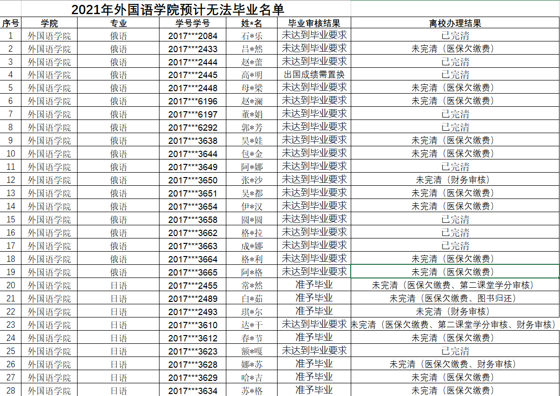 本科未毕业人员名单