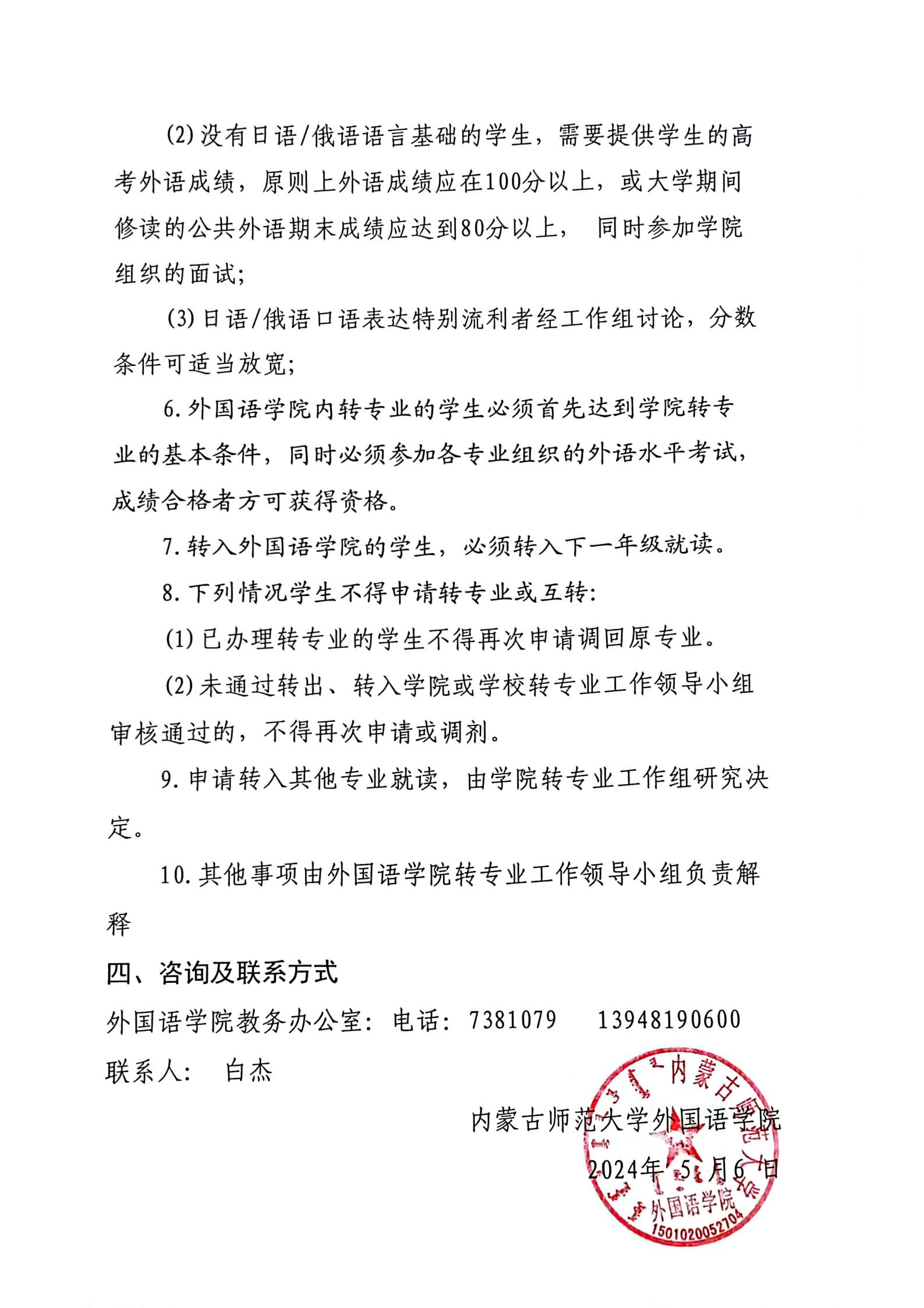 2024年bat365中文官方网站本科生转专业实施细则