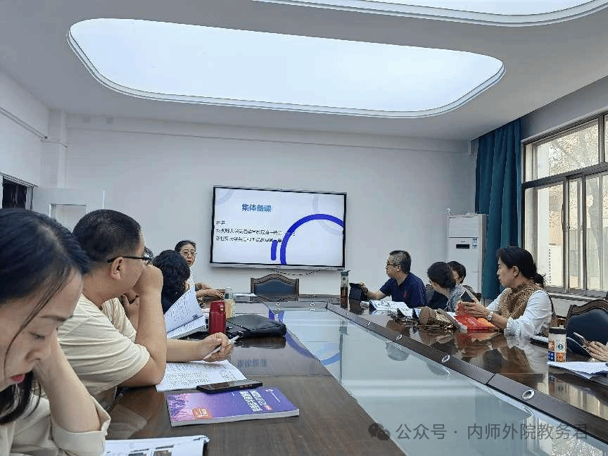 集体备课环节聚焦于新视野大学英语读写教程和新世界大学英语视听说教程第一册第一单元。首先,王立枫老师分享了自己的备课思路,其他教师也畅所欲言,从背景导入,词汇教学、阅读教学、课堂互动等方面进行了深入的讨论。通过集体备课,老师们取长补短,不断优化教学方案,为打造高效课堂做好了充分的准备。
