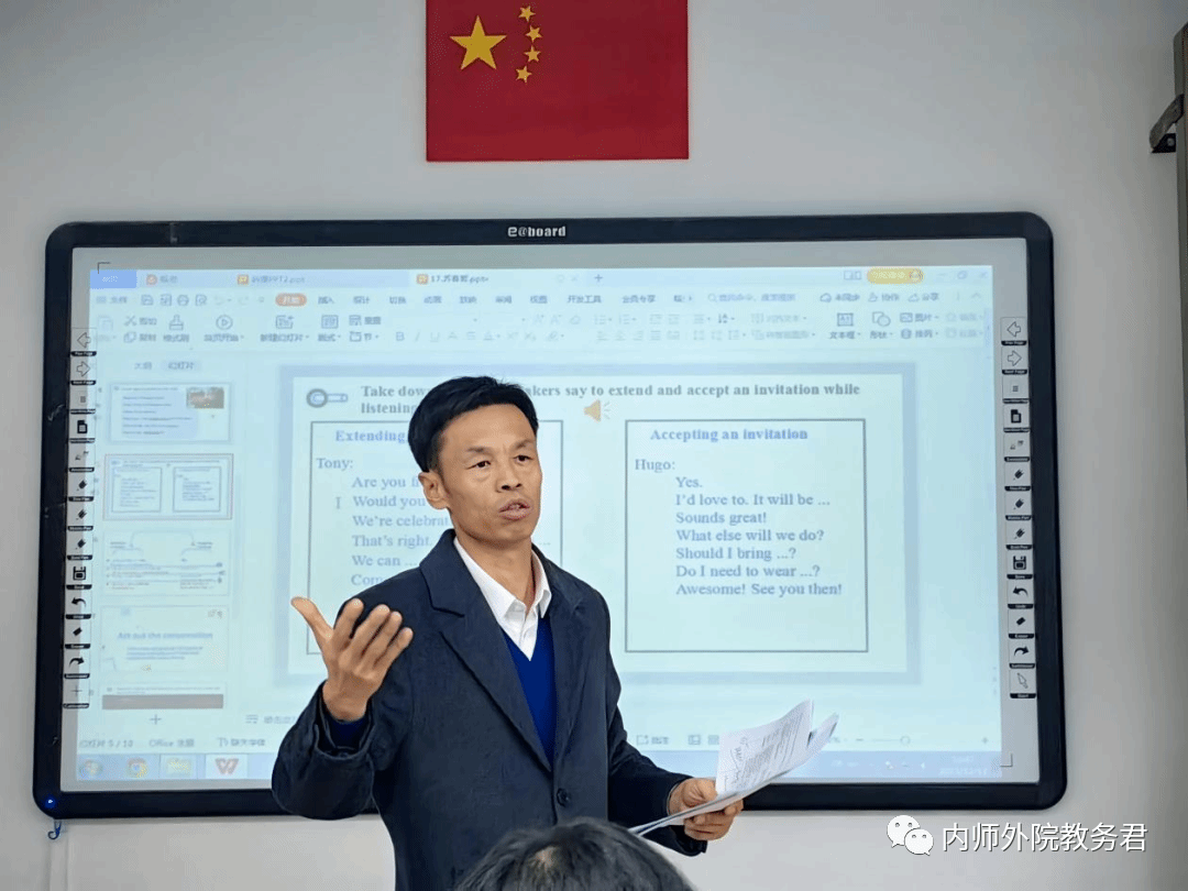 阿力更老师首先介绍了2023年英语(师范)专业教育实习的基本情况:本次教育实习由20级英语(师范)方向的153位同学参加,实习周期为8周,校内指导教师34人,校外指导教师166人,实习基地校分布于区内11盟市和北京市。实习期间,我系教师吴晓春、郭玺平、呼和塔拉、阿力更等教师还走访了bat365中文官方网站附属学校和赤峰地区十余所中小学,多方面、多维度地了解实习生的实际表现,同时也收到了实习基地校领导和实习指导教师对我系实习生的高度评价。在本次教育实习中,实习生们顺利地完成了本次实习任务,在教学能力、口头表达、人际沟通等方面得到了锻炼和提高,本次教育实习圆满完成。