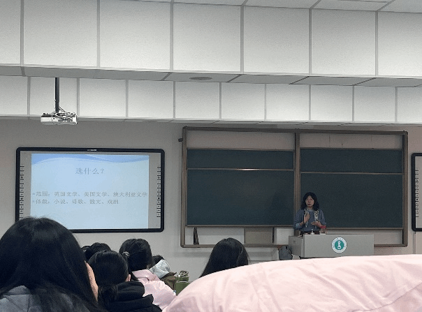 12月4日,刘海霞老师对文学研究方向的选题进行了指导。结合具体案例的分析,刘海霞老师以其丰富的经验分享了如何撰写一篇出色的英语文学方向的毕业论文。在讲座中,刘海霞老师注重引导学生思考文学作品背后的文化脉络,激发学生对英语文学研究的浓厚兴趣。同时,刘海霞老师还鼓励学生要勇敢表达独特见解。刘海霞老师以其风趣幽默的讲解,为英语文学方向论文的选题提供了有价值的思路借鉴。