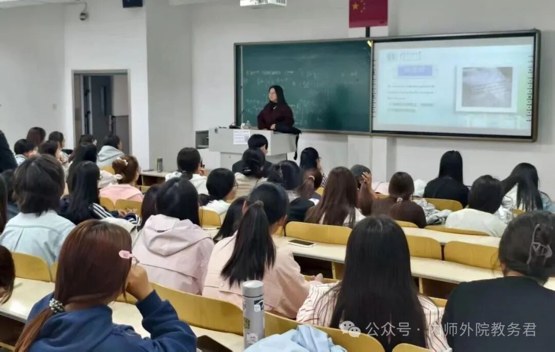 最后,清华大学博士、2025级英语3班班主任郑坤老师作为新生班主任代表,以“努力与方法”为关键词寄语新生。她指出,语言学习贵在勤学苦练,人人皆可学好;即便起点不同,只要多听、多练、多开口,进步必然可期。郑坤老师还建议同学们尽快明确学习目标与职业方向,提前布局、踏实积累,力争在毕业时收获理想的offer。