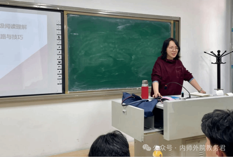 为帮助同学们更好地备战即将到来的英语专业四级考试,英语系于3月20-26日举办了专四考试辅导系列讲座。讲座内容涵盖听力、阅读、写作三大核心模块,深入解读考试大纲,全面剖析出题思路,传授备考策略与答题技巧,并结合经典案例进行实操演练,为备考同学提供了科学有效的指导。刘丽娜老师围绕专四阅读题型展开讲解,系统介绍了高效解题的四步法:扫描题干提取关键词、通读全文抓住中心、仔细审题返回原文、重读选项得出答案。她针对不同题型提供了精准的解题技巧,并总结了正确答案的常见特征,帮助同学们提升阅读效率与准确率,为考试增添信心。
