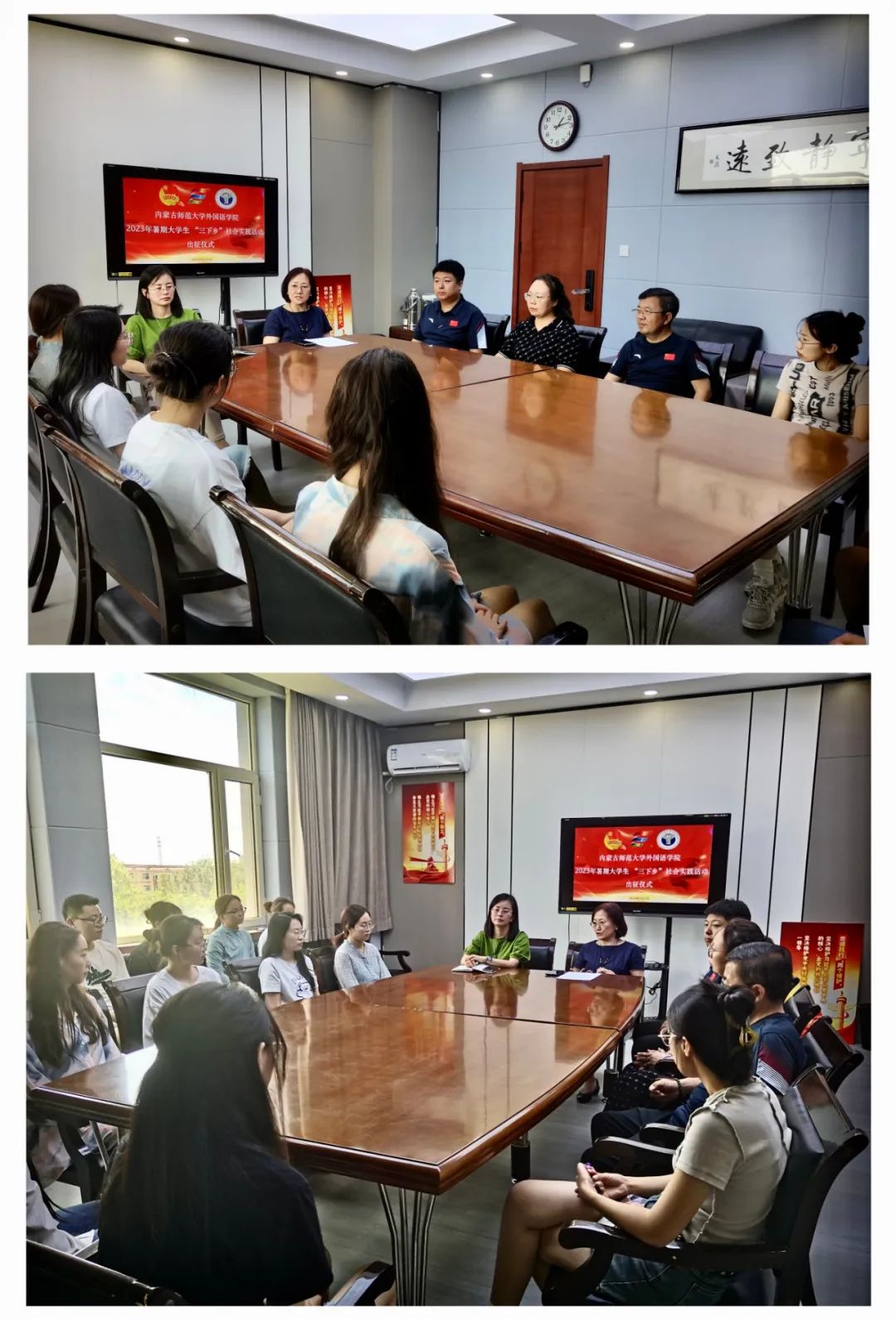 在出征仪式上,赵晓军院长重点强调了纪律、安全以及团队合作等方面的问题,嘱咐大家互相帮助、互相配合、认真负责,并通过实践活动讲好外院故事,传递师大声音。