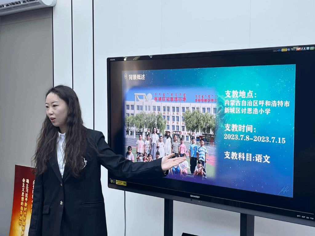 随后,2020级汉英一班张蓓、2020级汉英一班张晓怡、2021级商务英语班冯东蒙三位同学作实践经验汇报和分享。她们从教学情况为切入点,分享了自己的教学方法及实际应用情况,并在最后指出,通过本次“三下乡”对乡村教育有了更深刻的认识,也激发了她们的学习热情。