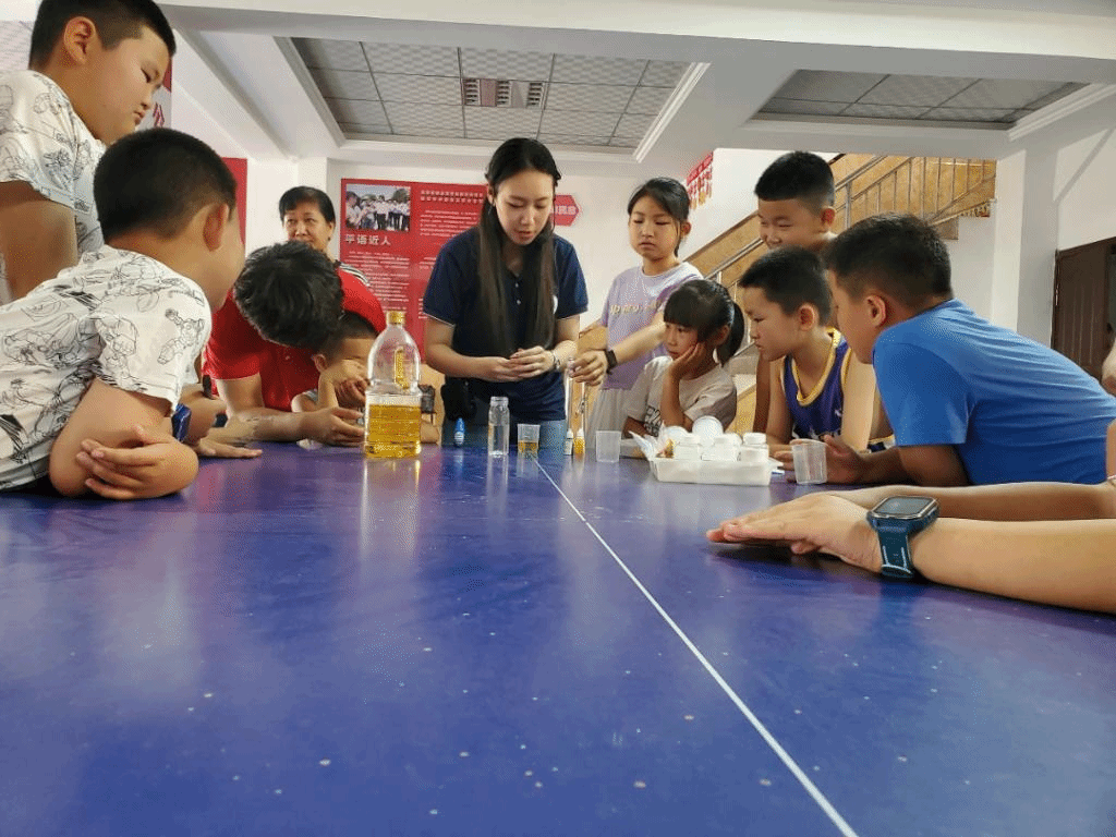 首先志愿者以演示文稿讲解的方式为孩子们做了日常安全知识包括居家用电安全、防溺水教育、防拐技能培养等的科普,接着是一场合作完成的科普实验—彩虹雨,参与活动的孩子们在大学生志愿者引导下,亲自动手,收获颇丰。